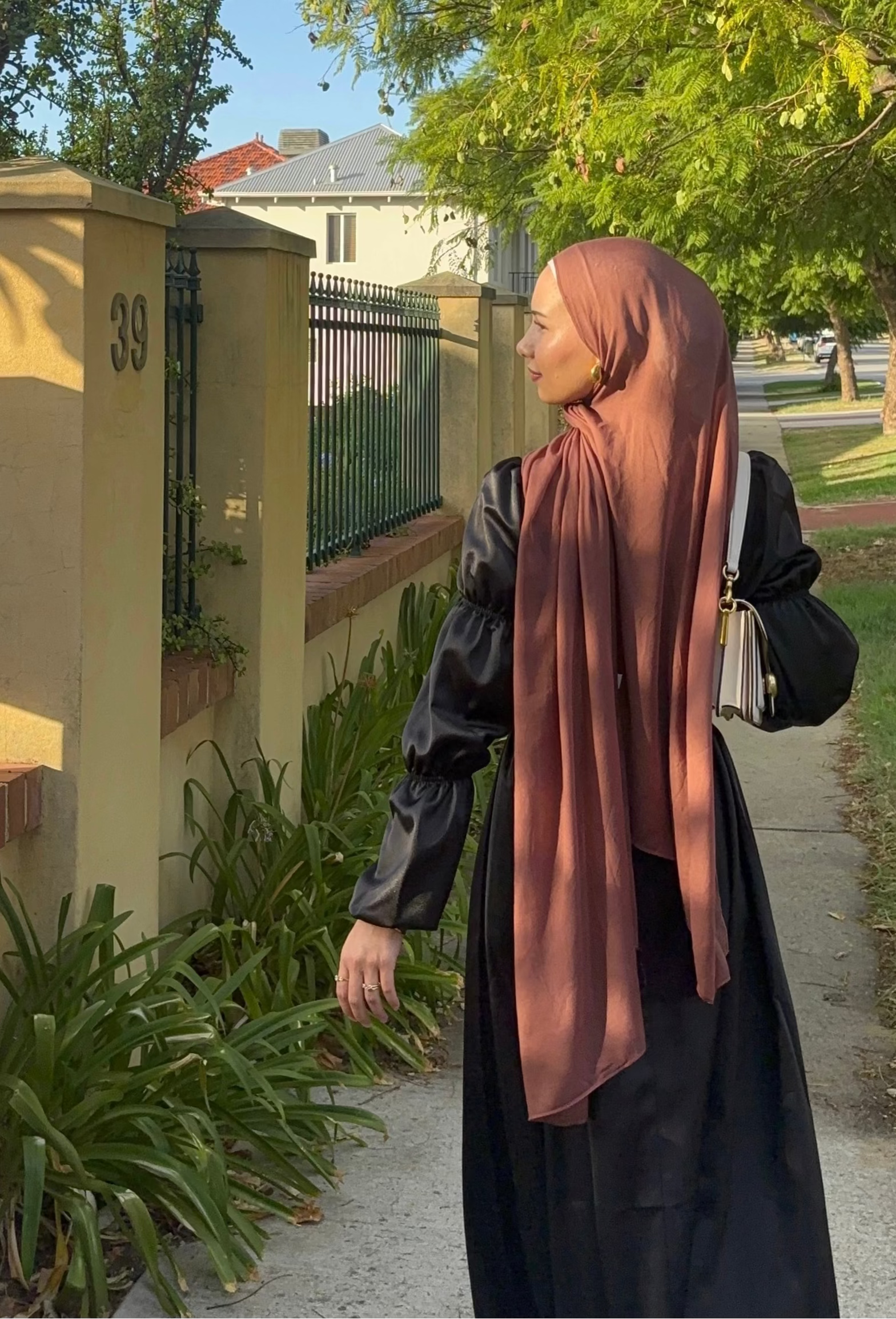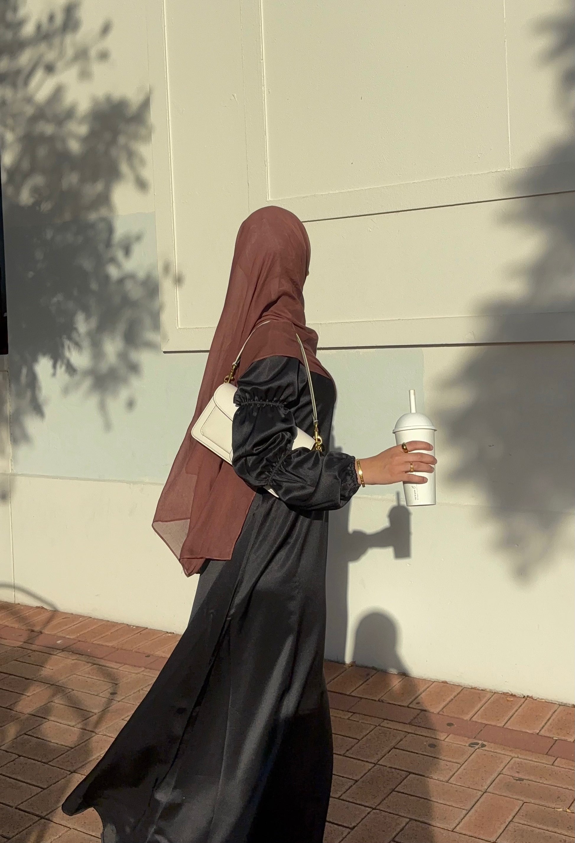 Illuminate the night in the Qamar Black Evening Dress, a timeless piece inspired by the ethereal beauty of the moon. Crafted from rich satin, this dress features statement puffy sleeves and a sleek, flowing silhouette that ensures you step into the spotlight with grace. The deep black hue reflects sophistication, while the luxurious drape offers both comfort and elegance. A true wardrobe essential, Qamar is the perfect go-to black dress—easily styled up or down to suit any occasion. Designed with adjustable side ties, it provides a customisable fit while maintaining a modest and refined look. Whether attending an evening event or a special celebration, the Qamar Dress guarantees an unforgettable presence.